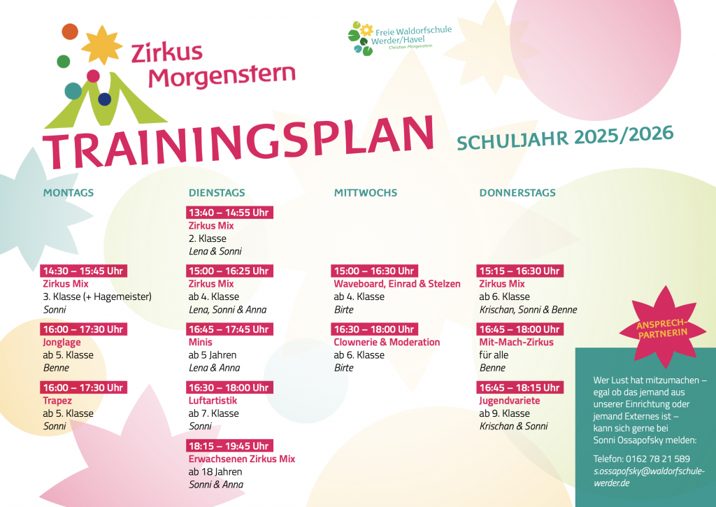 Der Schulzirkus „Zirkus Morgenstern“ ist ein pädagogisches Angebot der Freien Waldorfschule Werder (Havel). Im Rahmen des Zirkusprogramms werden seit 2016 verschiedene Zirkusdisziplinen wie Akrobatik, Jonglage, Einradfahren und vieles mehr angeboten. Ziel ist es, den Schüler*innen neben körperlichen Fähigkeiten auch soziale Kompetenzen und Selbstvertrauen zu vermitteln.